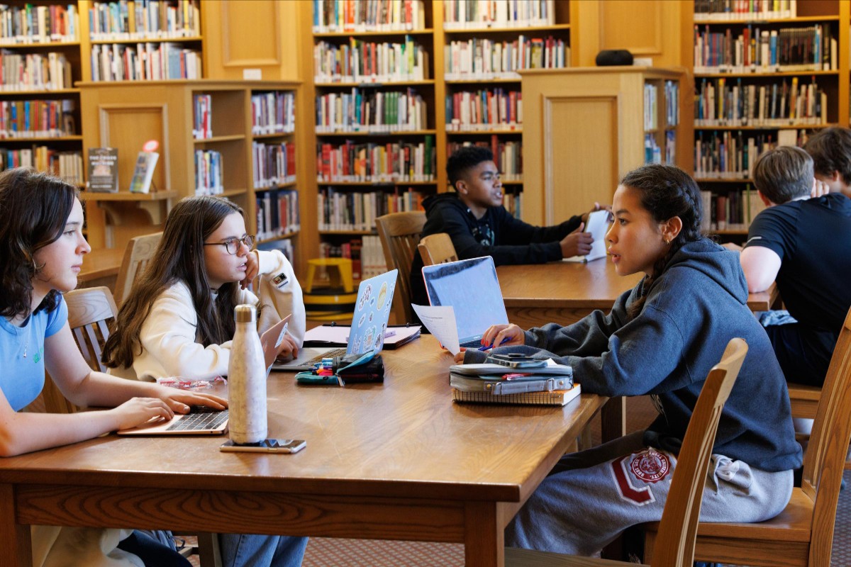 The Middle School Library serves as a vibrant resource for students in grades 5–8. Its extensive collection includes fiction, graphic novels and non-fiction, complemented by digital resources, including more than 40 research databases and SORA OverDrive access to eBooks, audiobooks and magazines.