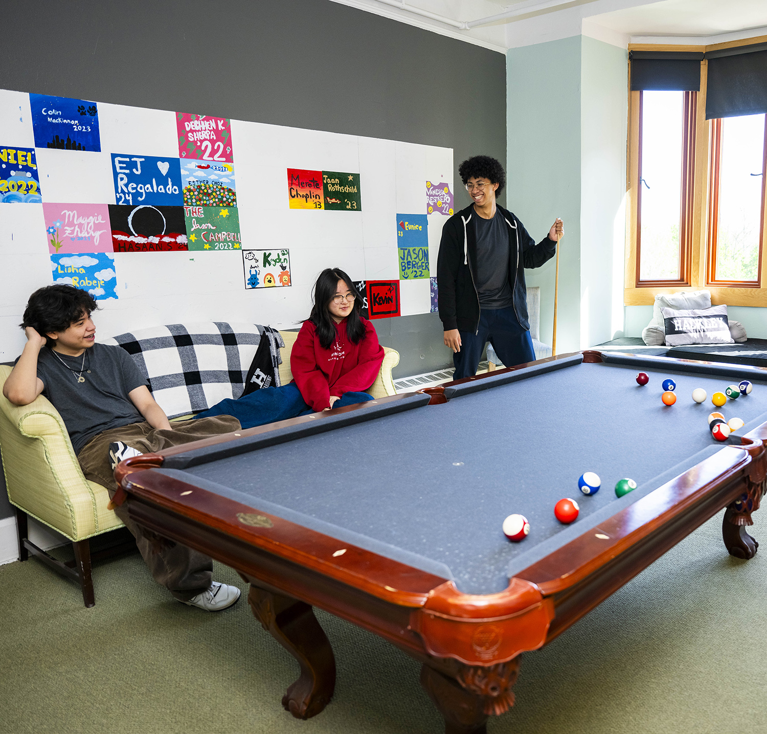 The North Side of the dorm traditionally houses female-identified students. The South Side of the dorm traditionally houses male-identified students. Both sides are connected by a communal space, consisting of a lounge, office/study area and kitchen.
