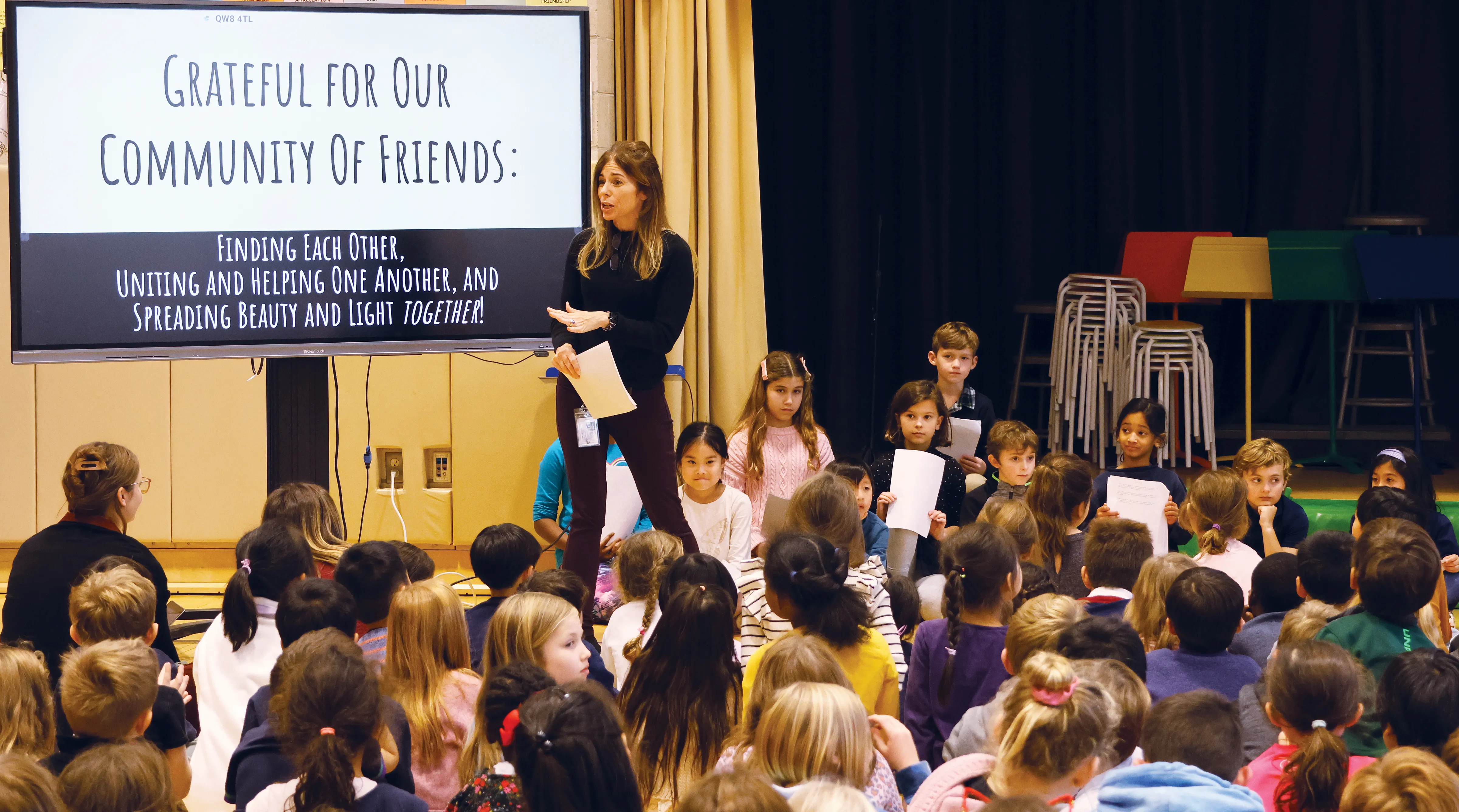 Lower School students gather for a Character Education assembly centered on the virtue of “community.”