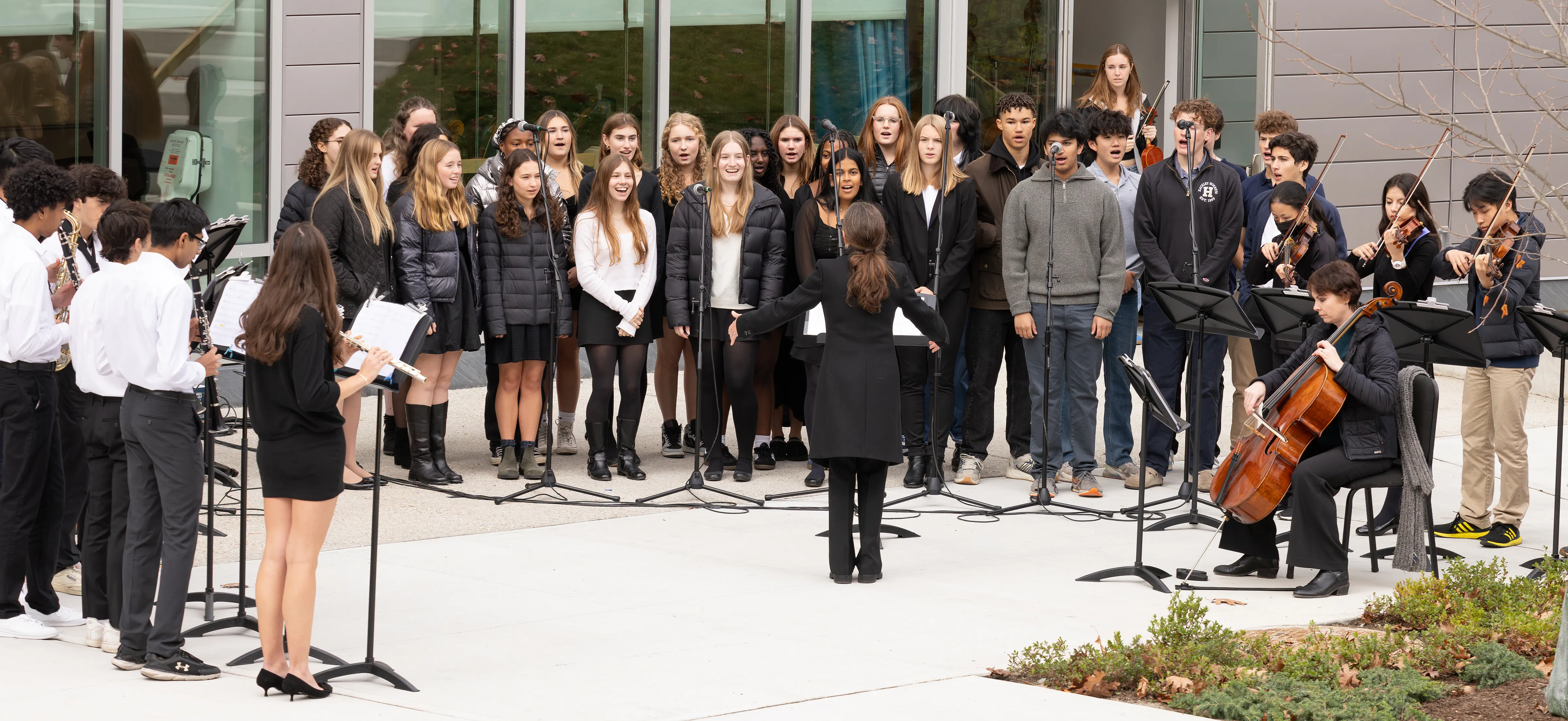 Upper School musicians perform at the Ribbon Cutting Ceremony marking the opening of the Center for the Creative Arts and Technology.