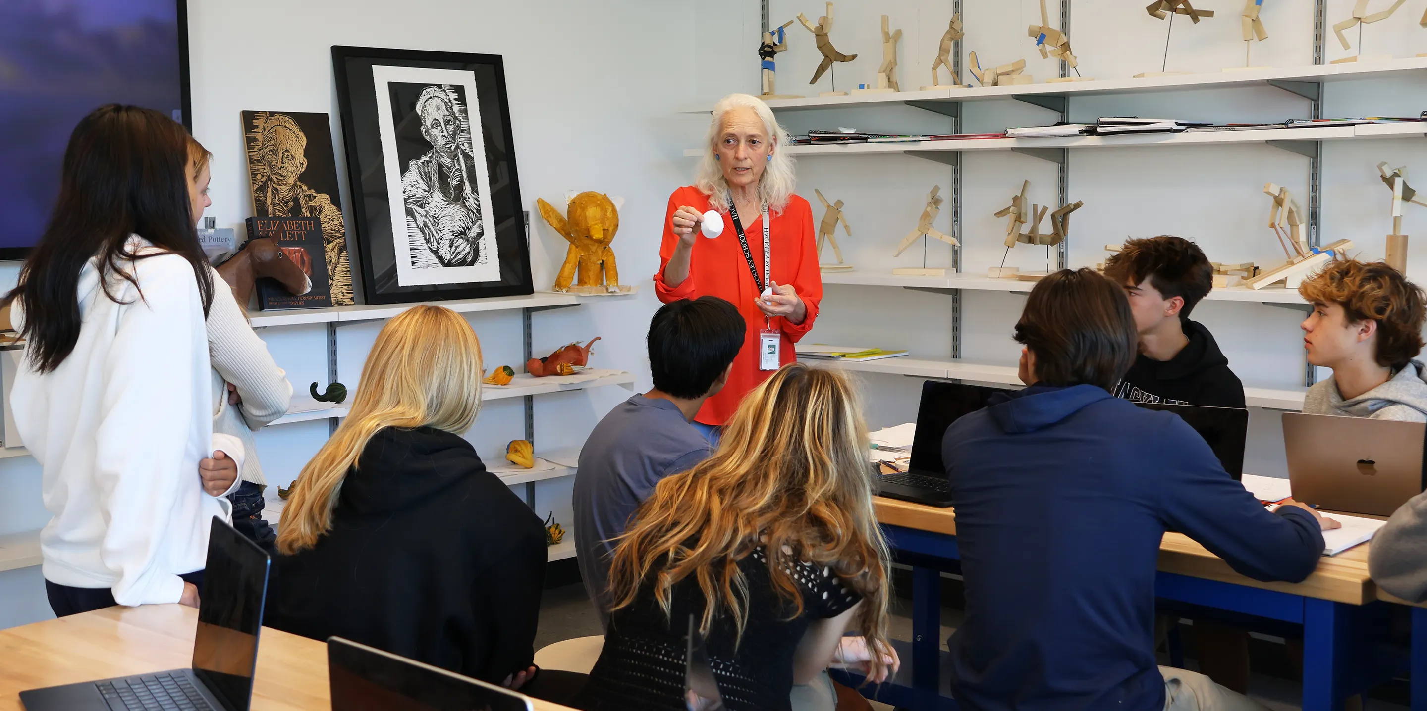 Visual Arts teacher Sarah Coble leads a class with Upper School students in the Center’s new pottery studio.