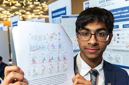 Vivek Malik ’25 was chosen as one of 40 finalists in the prestigious Regeneron Science Talent Search for his research project, “Novel characterization of Plexin D1’s role in regulating the macrophage immune response”!