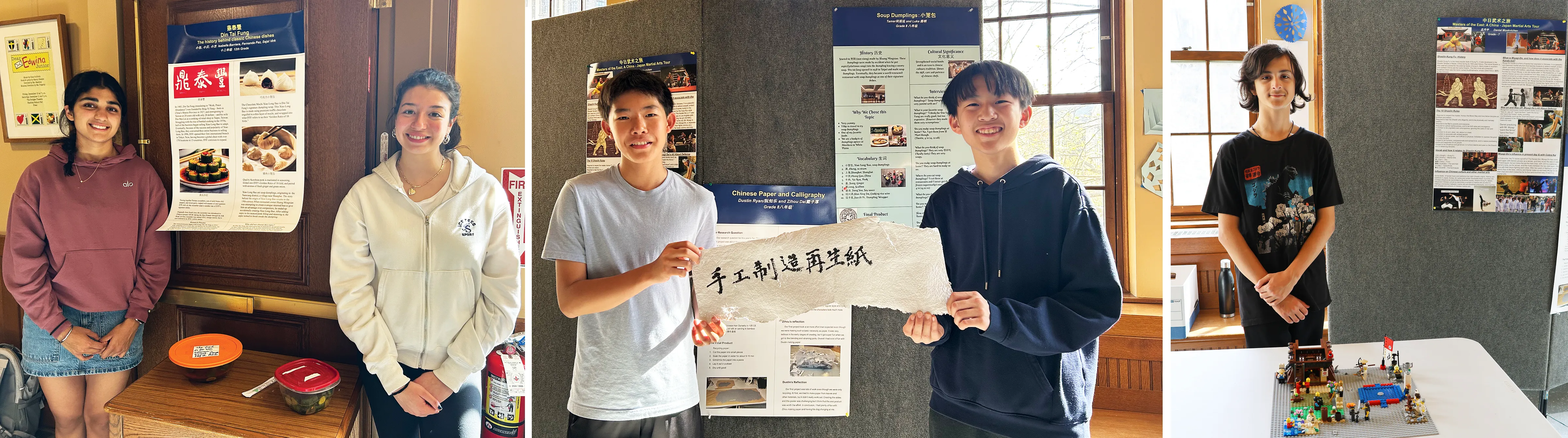 Middle and Upper School Chinese language students showcase their research projects in the 10,000 Mile Trek exhibition in April 2025.