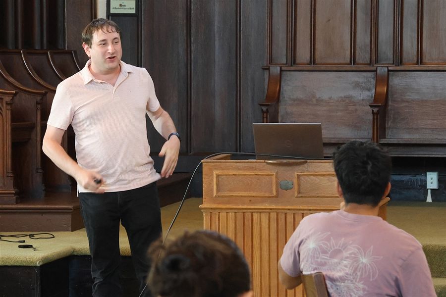 (Pictured: Adam Kahn ’00, Associate Professor of Communication Studies at California State University, Long Beach, speaks to ISRP students.)