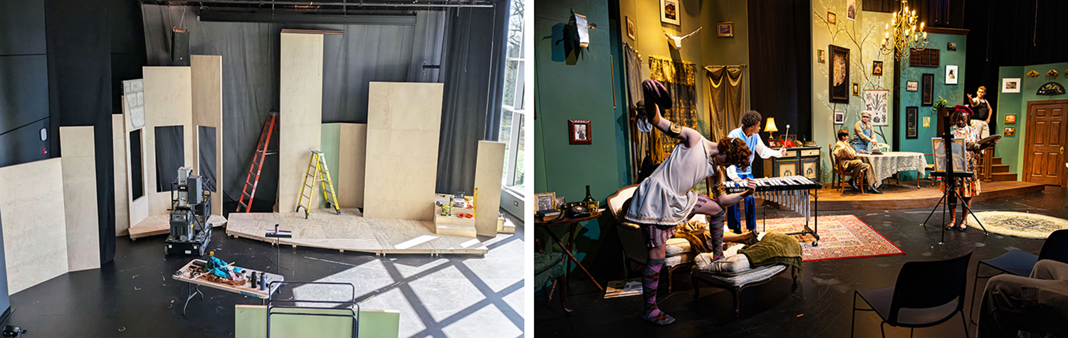 From a comfy chair in Diller Hall, it can be easy to be swept away by the talent of our students and the excitement of the show, but behind you in the booth is a team of folks who know that the show begins far before the actors set foot on stage. The production had to be designed, the sets painted, the lights cabled. The script had to be cued, and the stage manager had to give the actors their “places” call and tell the light board operator to “go” on House to Half.