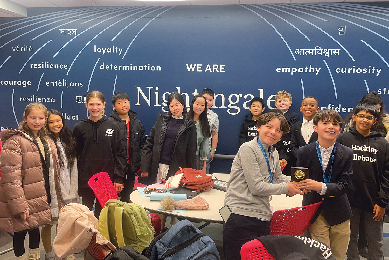 Hackley’s Upper School debate team had a strong showing at the Dec. 13 HSPDP Invitational Tournament hosted by Applied Technology High School in New Jersey. Hackley earned first place in the overall School Awards with 14 total wins across six teams and second place in the Tournament Award with the second highest win percentage. And earlier in the month, the Middle School debate team also had an exciting tournament day at the Nightingale-Bamford School.