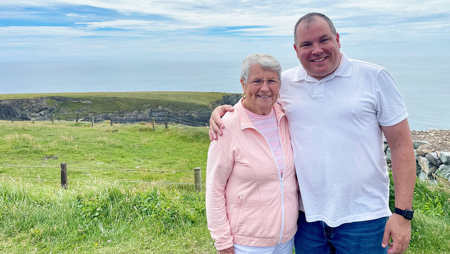 Bobby Aldrich and his mom in Ireland in 2024.
